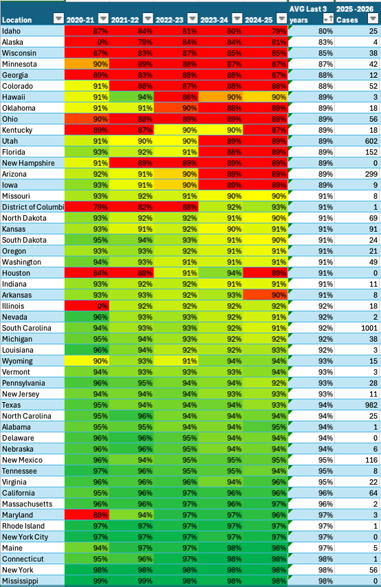 States ≥95%: only 278 cases since 2025